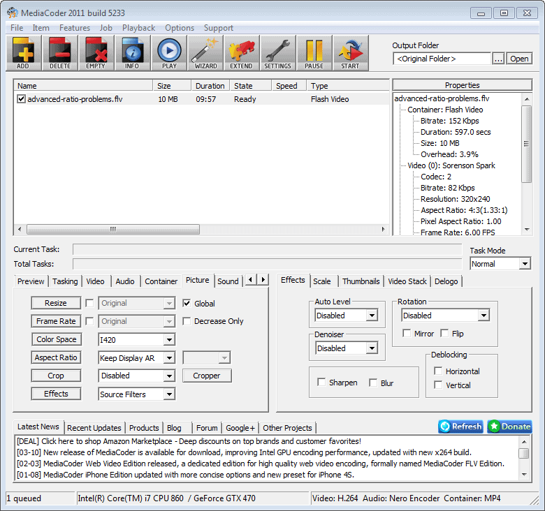 Media Coder is a free audio and video transcoder that enables you to convert many audio and video formats in the program interface. It ships with built-in codecs, filters and media player support which means that you do not have to go codec hunting before you can convert a particular video or audio file into a different format.
