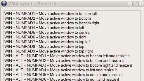 Win Layout adds 33 new keyboard shortcuts to the Windows operating system that can be used to manipulate open windows.