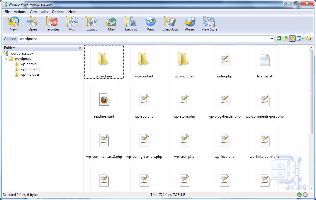 Winzip 14 comes with full Windows 7 support which includes jumplists and a progress meter in the taskbar when Winzip is active, a preview pane in Windows Explorer that can be used to preview contents of supported compression formats as well as library and touch screen support.