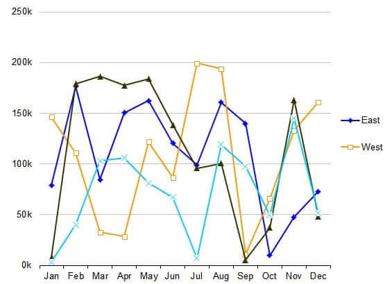 Thanks for this – it looks very nice. However, if you compare the ‘before’ and ‘after’ charts, where have ‘North’ and ‘South’ disappeared to (in the legend on the right hand side)?