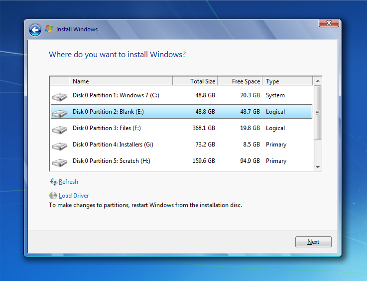 So the next time you come to install a copy of Windows Vista or Windows 7, have a good look at the list of available disks and partitions, and make certain you choose Disc 0 for your installation.