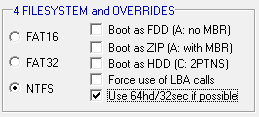 Select the desired bootloader and then choose a file formatting system in the field just below the BOOT TYPE list.