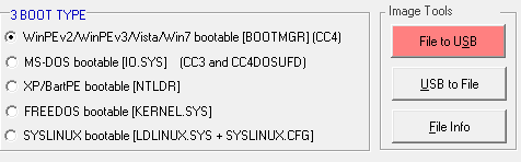 The File to USB option reads the image file content then writes to the selected drive. Only binary images will work and they cannot be compressed. The USB to File option reads file content and then writes it to an image file. With either option, supported image formats are IMG, ROM, BIN, RAW, BMDK, VDI, RAM, QCOW, QCOW2, CLOOP, DMG, VPC, VHD, VVFAT, and NBD. File Info option is included so that you can obtain file information.