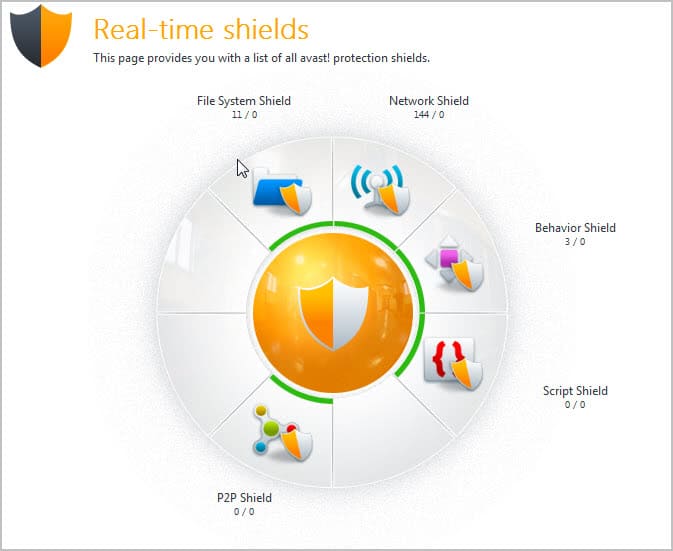 The Real-Time Shields display for instance displays visual information about each security module installed on the system.