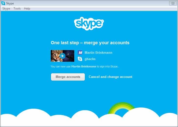 If you select I have a Skype account you are asked to log in to the account as well. You are then asked to merge the accounts in the last step.
