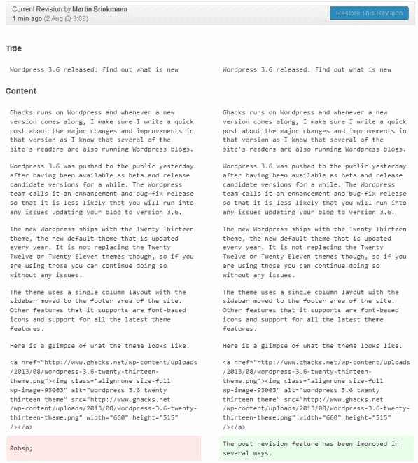 WordPress 3.6 was pushed to the public yesterday after having been available as beta and release candidate versions for a while. The WordPress team calls it an enhancement and bug-fix release so that it is less likely that you will run into any issues updating your blog to version 3.6.