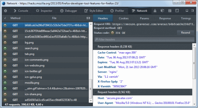 Check out the additional information sources section below for additional developer-specific changes in Firefox 23.