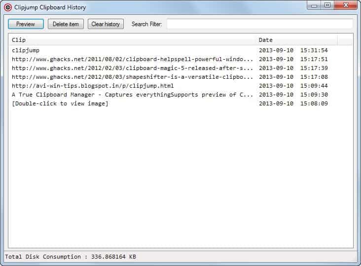 Clipjump is a free portable clipboard manager for the Windows operating system that improves the native clipboard significantly without really changing its core functionality at all. If you want, you can still use Ctrl-C to copy items to the clipboard and Ctrl-V to paste them into applications.