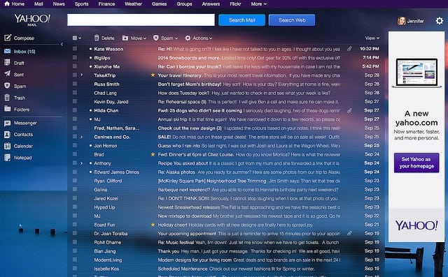 Themes previously changed the header on the Yahoo Mail website. The new rich themes modify the whole look and feel of the website instead.