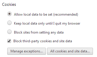 You can keep cookies set by the domains you connect to for as long as you do not clear them or they do not expire, or only for the session. If you want that, change the setting under cookies from "allow local data to be set (recommended)" to "keep local data only until I quit my browser".