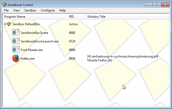 You can naturally also see that in the main program window, as all sandboxes and programs running in them are displayed here at all times.