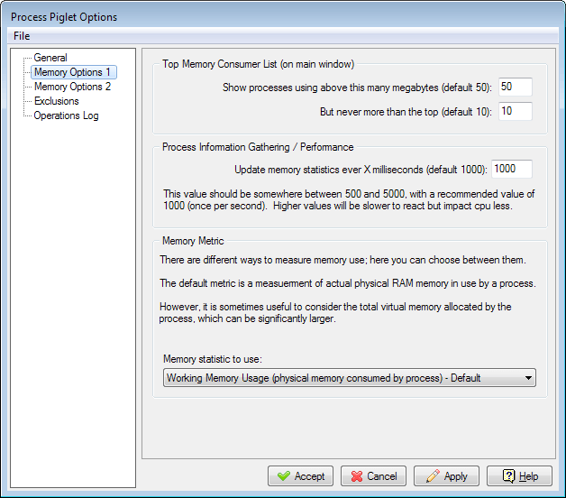Other options including changing the memory limit that defines which processes are monitored and which you are notified about, whether you want to be notified about a decline in memory usage as well, or how the alert box is displayed on the screen.
