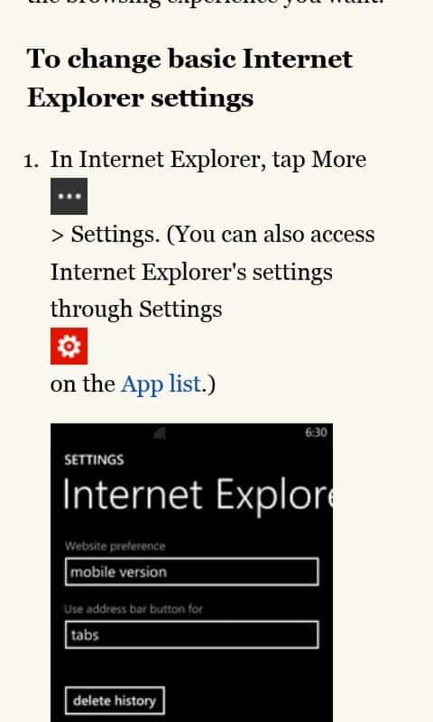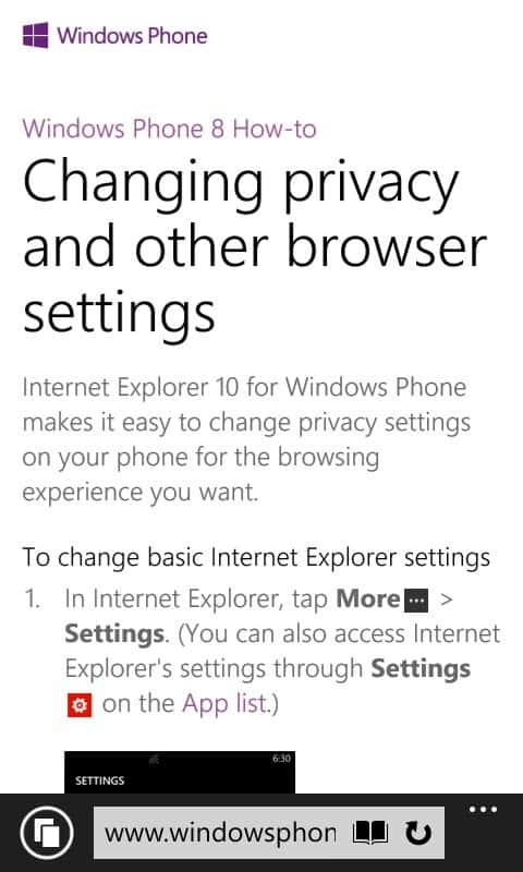 We can now go back or forward using swipe features. Swiping to the left goes to previously browsed page, and swiping to the right does forward. Previously there was no way to go forward in IE Mobile.