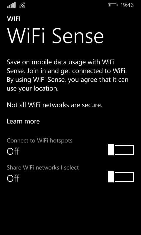 The WiFi sense feature (accessed from WiFi under Settings) photo shows its function.