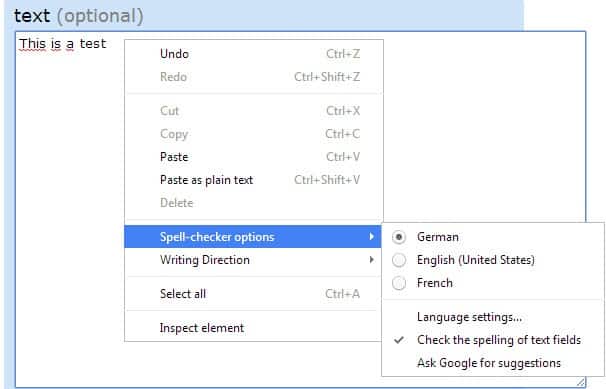 You can add additional languages and dictionaries to the browser. This can be useful if you want spell checking functionality for additional languages. So, if you write in German and English for example, you may want to add the German dictionary to Chrome so that your German texts get spell checked as well.
