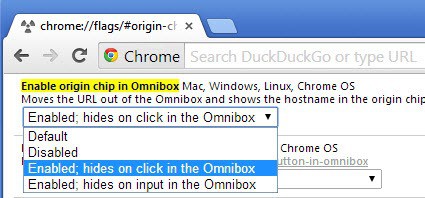 - Load chrome://flags/#origin-chip-in-omnibox in the browser's address bar