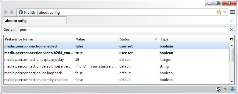 about:config…….media.peerconnection.enabled