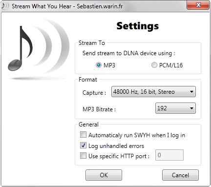 Stream What You Hear is a dead easy solution for Windows that enables you to stream sound (what you heard) from a PC running the program to compatible devices.