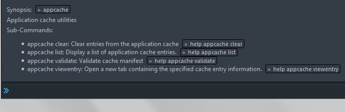 - appcache list to display application cache entries.