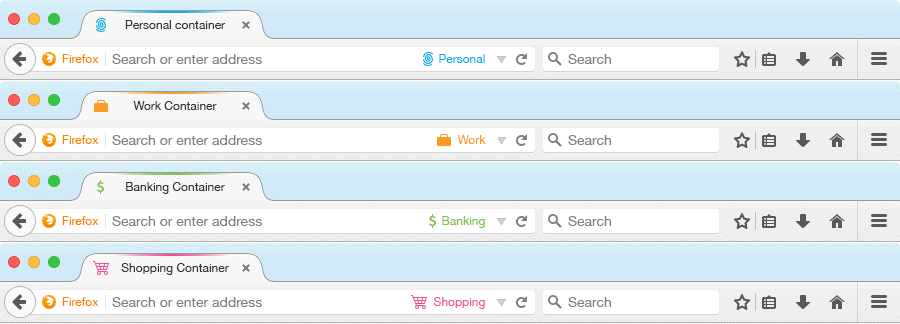 Containers will look different in the Firefox window so that they can be easily distinguished from one another.