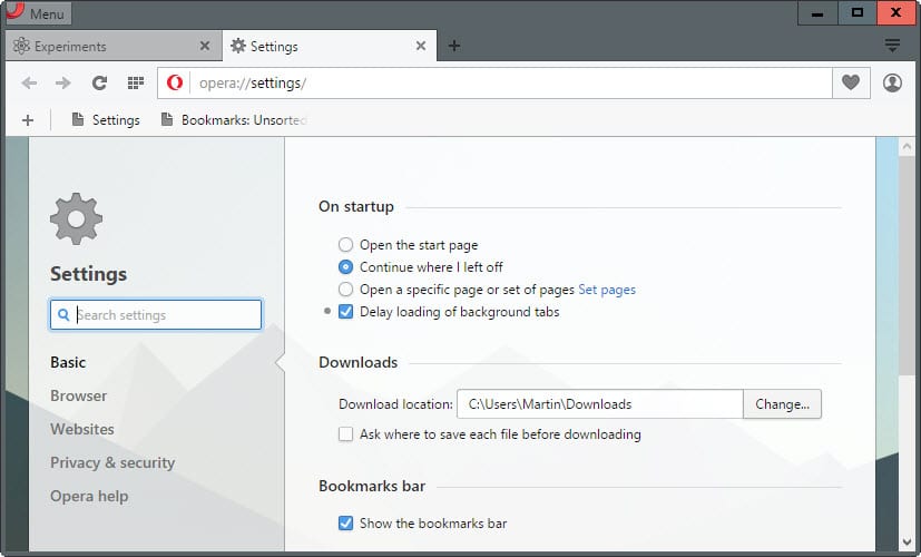 You may also notice that the main menu name has changed, and that Opera started to highlight the fact that there is a bookmarks bar available in the browser. According to the company, many users thought that Opera does not support a bookmarks bar because it was difficult to find out how to enable it in the browser.