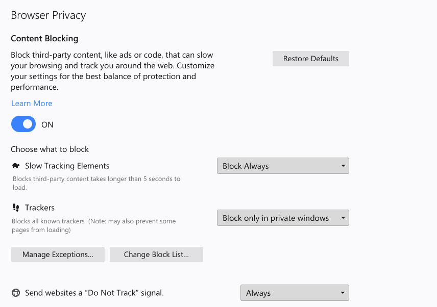 While Firefox users do get tracking protection baked into the new content blocking functionality, they will also get access to a new option to block slow loading content independently from blocking trackers.
