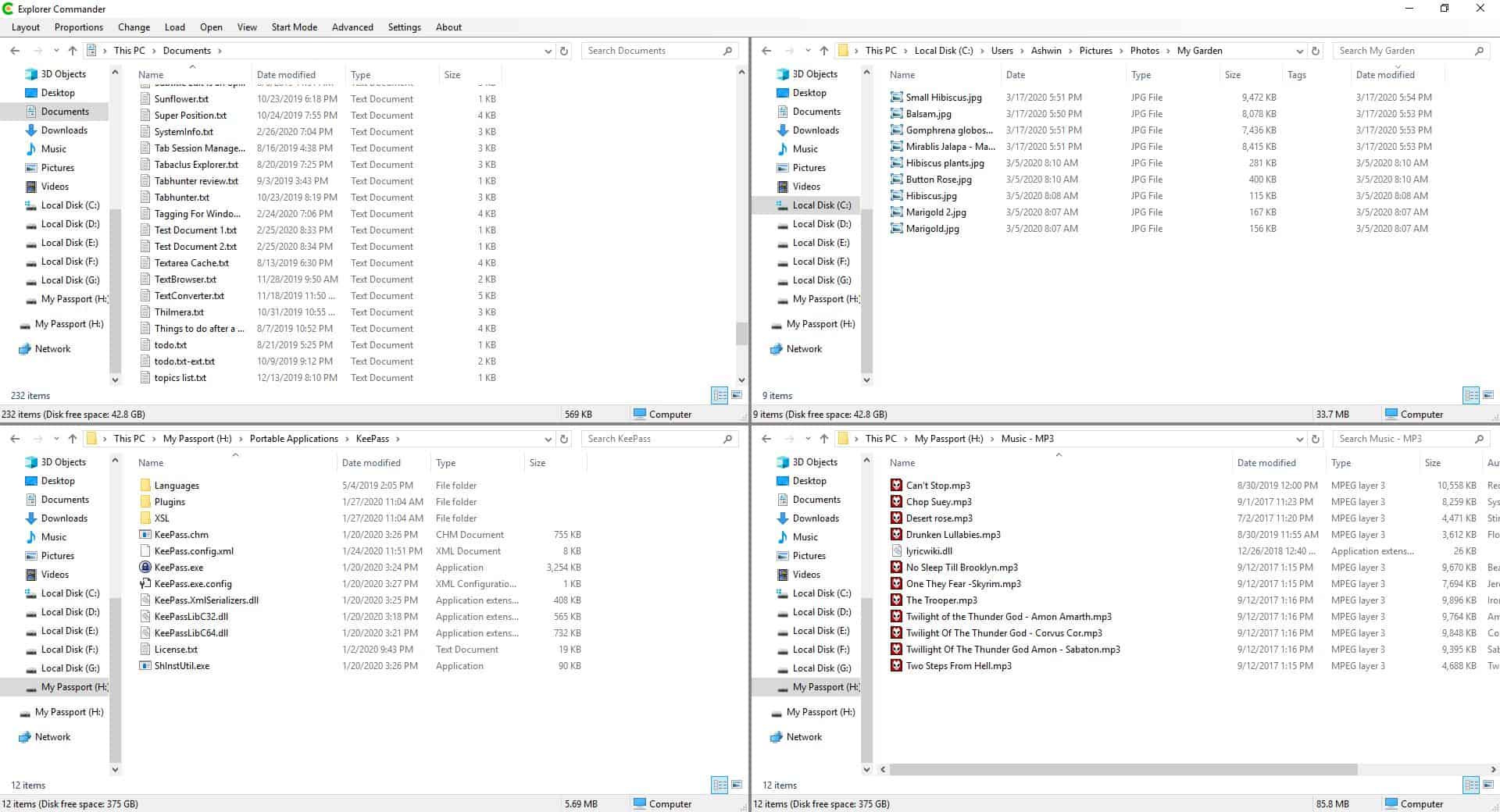 But why stop at 2 when you can have quad panes with Explorer Commander. This reminds me of Q-Dir.