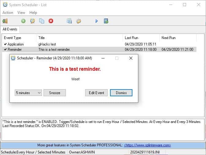 Set reminders, automate programs to run at defined times with System Scheduler