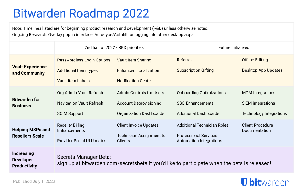 Bitwarden 2022 Roadmap