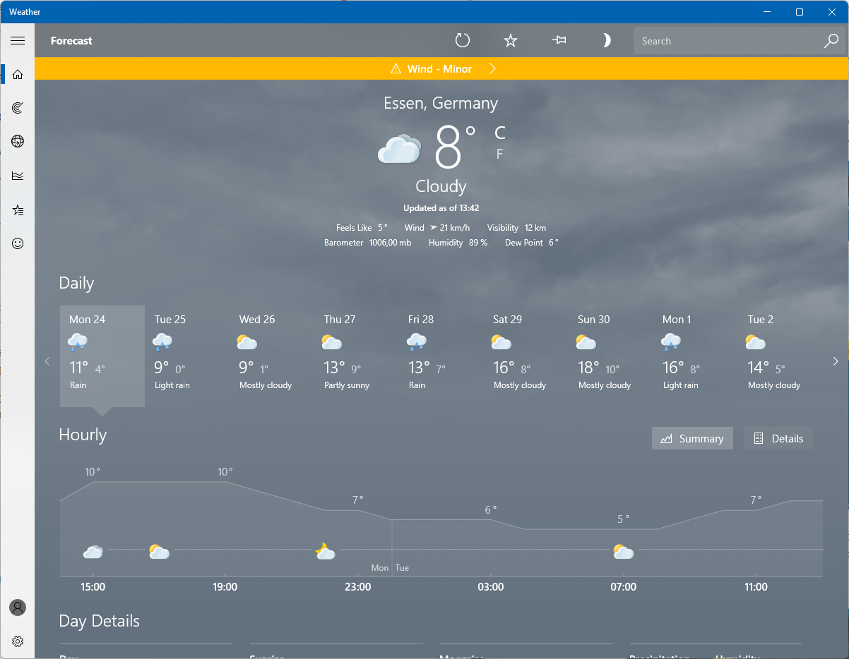 The new Weather app, which is already integrated into development builds of Windows, offers quite the different experience. Windows testers may need to check for updates in the Microsoft Store before the new version becomes available. It has version 4.53.51085 at the time of writing, but new versions may be released that increment the version.
